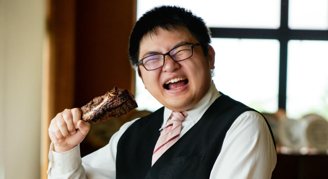 Chef de Cuisine of Uzu no Oka Restaurant with a spectacular view. He always has a wonderful smile on his face. He is usually the one who appears on TV. He shops exclusively at Lawson.